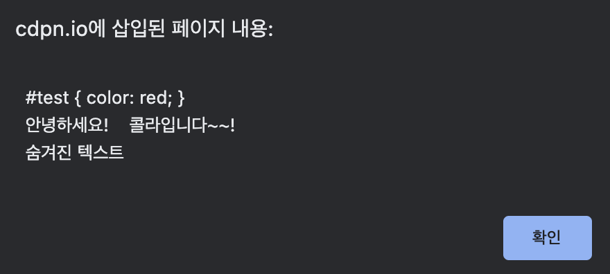 - text(인자)는 HTML or XML로 해석될 수 있는 문자열(html code), (DOM) tree에 삽입할 수 있다.