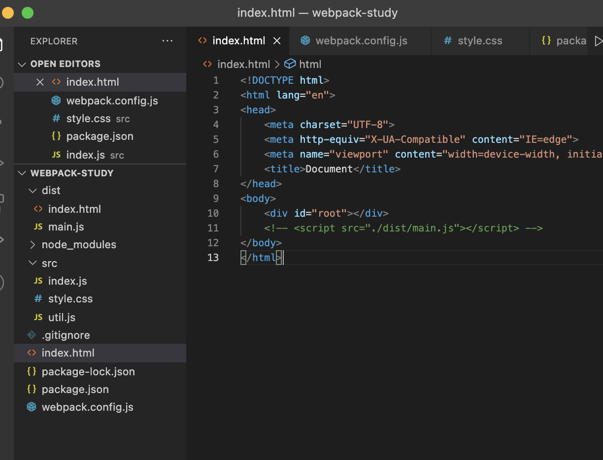 6. index.html에서 dist파일 안에 생긴 파일 사용