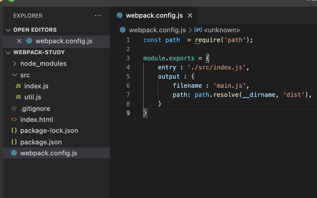 path: path.resolve(__dirname, 'dist')// 폴더를 의미한다. 현재 경로 하위에 dist 폴더를 의미한다.