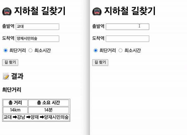 - 출발역과 도착역을 입력받아 경로를 조회한다.