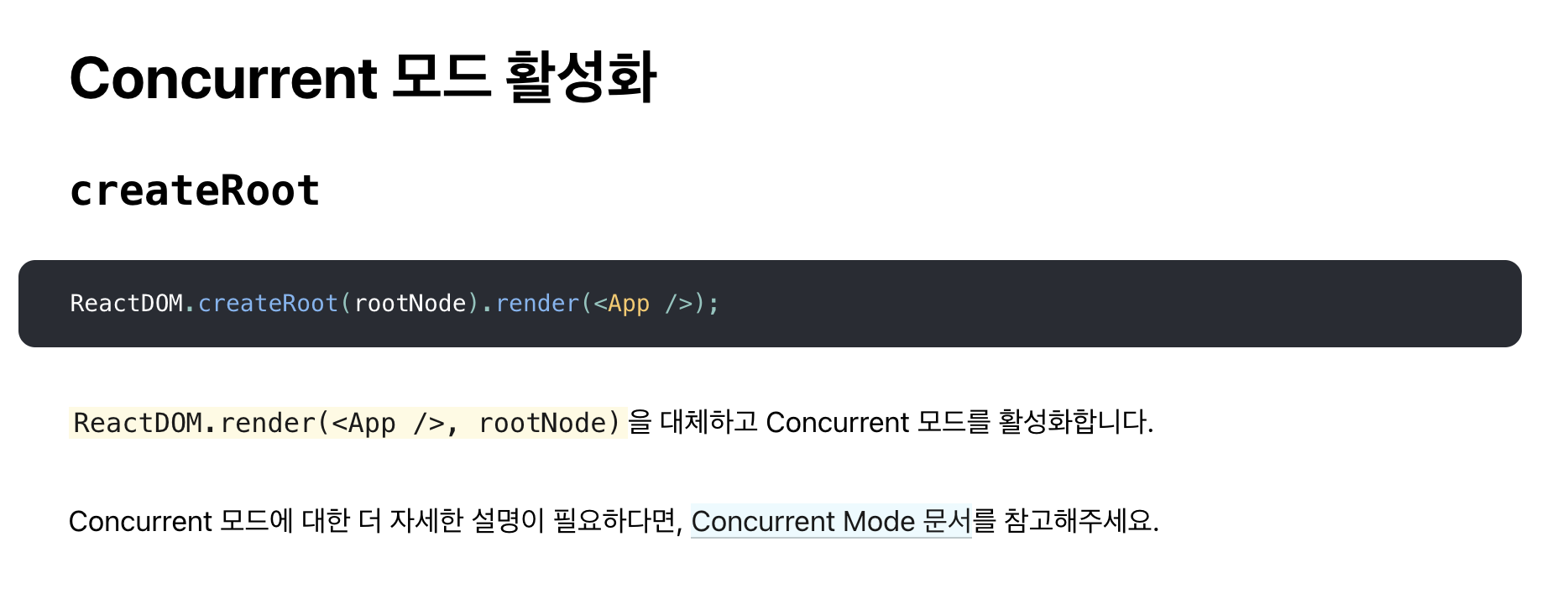 https://ko.reactjs.org/docs/concurrent-mode-reference.html#createroot