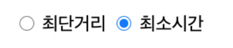 라디오 버튼을 클릭하면 MainController에서 해당 라디오의 id값을 InputView에 전달해서 checked속성을 준다.(radio option의 default값은 최단거리이다)